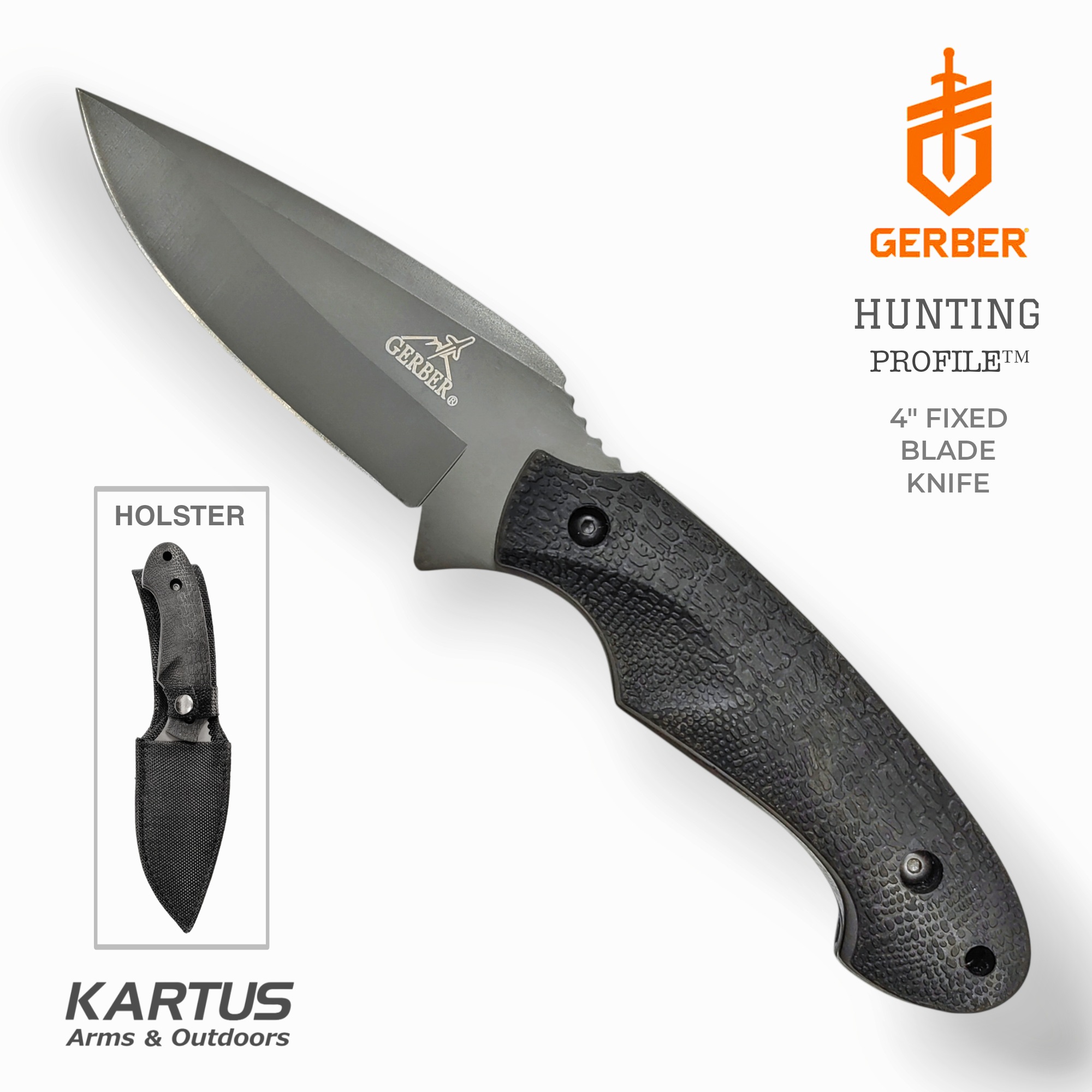 Equip yourself for hunting with the GERBER Hunting Fixed Blade Knife. This sturdy and reliable knife is designed for outdoor enthusiasts, providing a sharp edge for various cutting tasks.