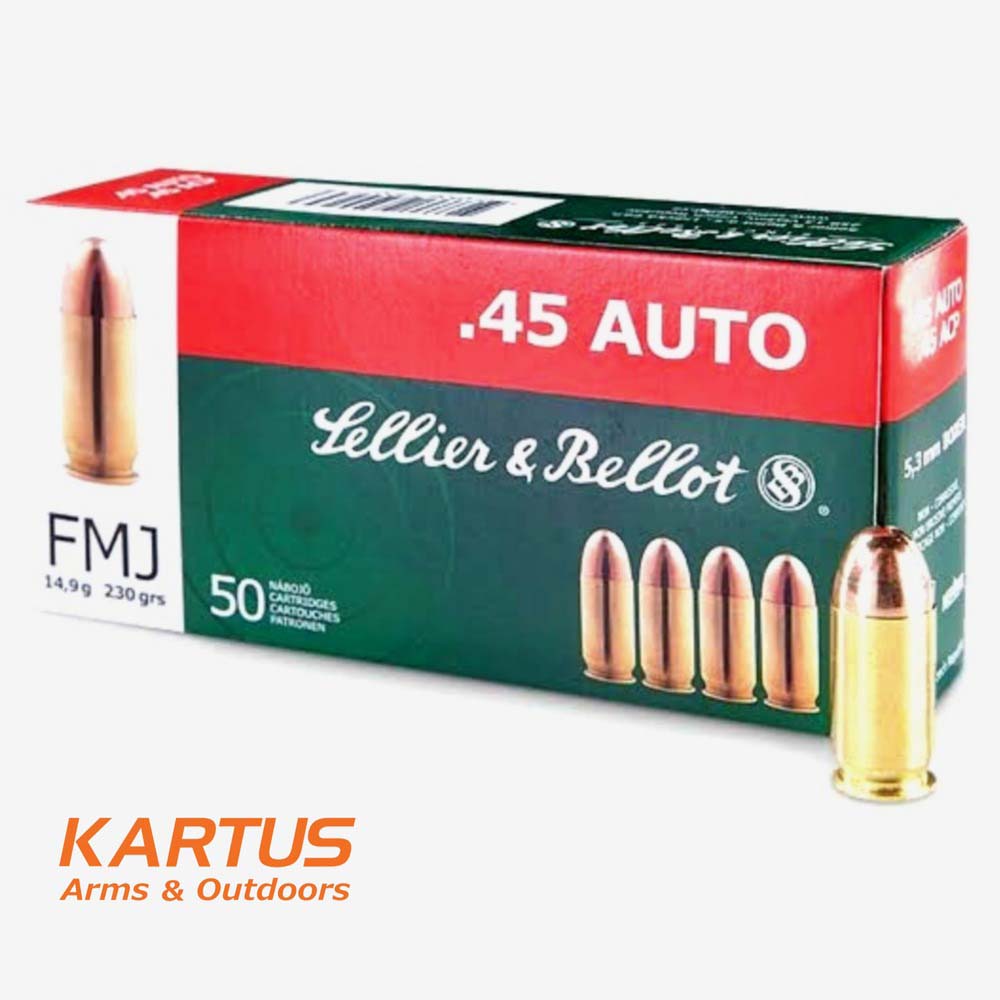 Sellier & Bellot .45 (FMJ) ammunition is ideal for training and range sessions. Known for its reliability and accuracy, this full metal jacket ammo provides consistent performance in .45 ACP firearms.