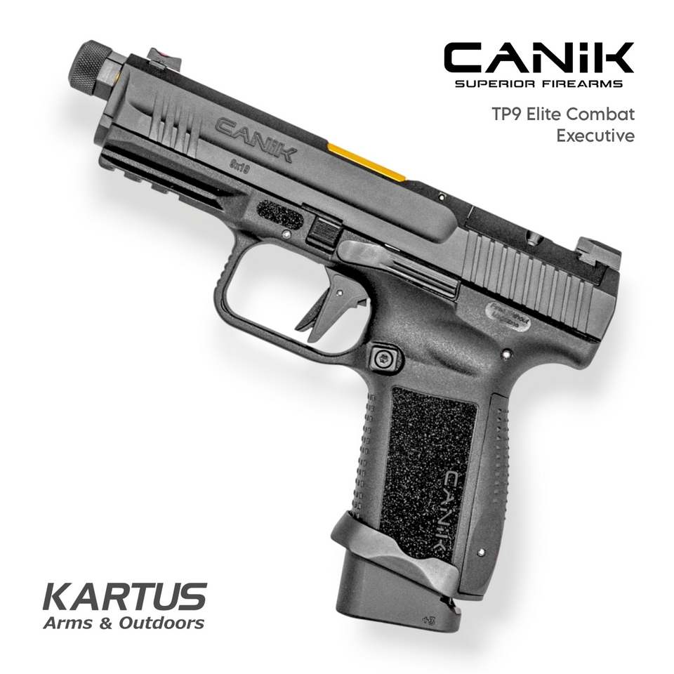 The Canik TP9 Elite Combat Executive is the pinnacle of Canik's engineering, developed in collaboration with Salient Arms International. This high-performance 9mm pistol features a gold-finished match-grade threaded barrel, optics-ready slide, and a DLC-coated slide for exceptional durability and reduced friction. Built for competitive and tactical shooters alike, the TP9 Elite Combat Executive combines premium upgrades with dependable function. Its advanced ergonomics, enhanced trigger, and elite features deliver a true combat-ready platform in an elegant and aggressive package.