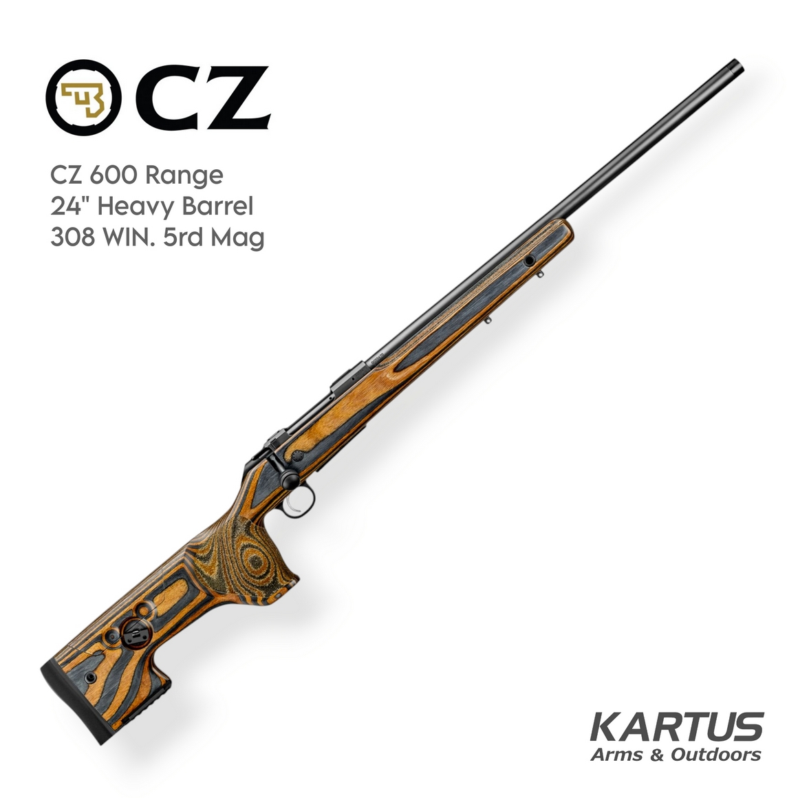 The CZ 600 RANGE is a versatile target and hunting rifle for highly precise shooting at medium to long distances. It comes with a guaranteed, factory-tested accuracy of sub-0.75 MOA at 100 meters (five-shot groups when using match-grade factory ammunition). A heavy, CZ cold hammer forged barrel ensures it meets its accuracy requirements and features a muzzle with standardized threading for easy mounting of accessories. A solid laminated wood stock contributes to comfort and precise shot placement, with the buttstock ensuring stability and reliability when shooting with support. A tool-free, adjustable comb allows the stock to be fine-tuned to each shooter’s needs. A rail under the toe allows a monopod to be easily attached for stable elevation adjustments. The pistol grip is designed for right-handed shooters and provides comfortable thumb and hand support during extended range sessions. The stock is equipped with QD sockets on each side of the stock for installation of quick disconnect sling swivels.
