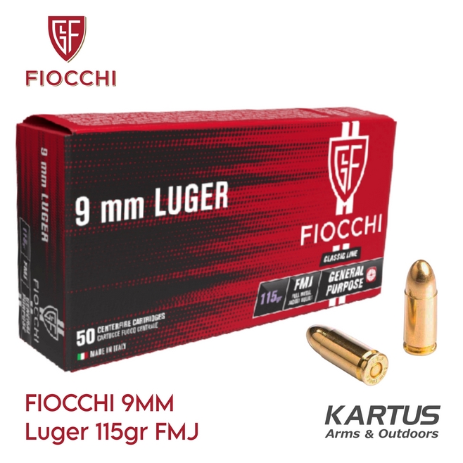 FIOCCHI 9mm Luger 115gr Full Metal Jacket. Made in Italy.