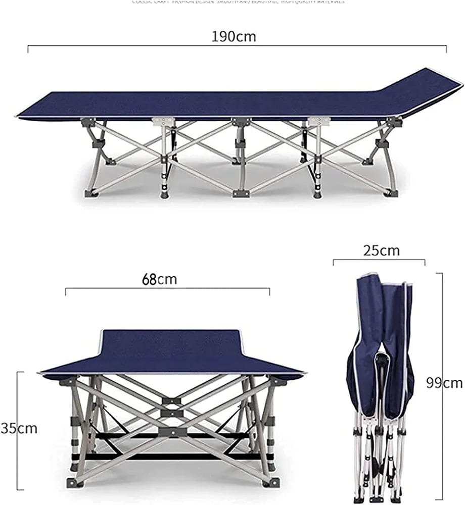 Sleep comfortably anywhere with this Foldable Camping Cot, designed for both indoor and outdoor use. The rust-resistant iron frame and water-resistant polyester fabric ensure durability in various environments. Its inclined design provides added comfort, reducing strain on your back, neck, and shoulders — perfect for a restful night under the stars or at home.