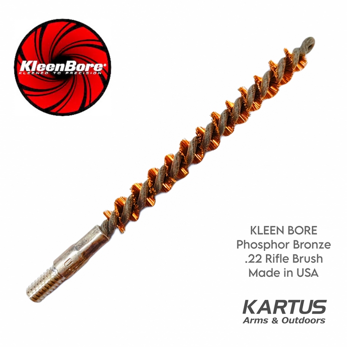 KleenBore .22/ .222/ .223 Phosphor bronze Rifle brushes are precision made for safe, effective removal of fouling and powder residue. Features straight (rather than crimped) wire bristles for more effective cleaning power. The brush remains thick and stout and will not easily bend with force down the bore. The bronze brush is designed specially to not damage the grooved rifling.