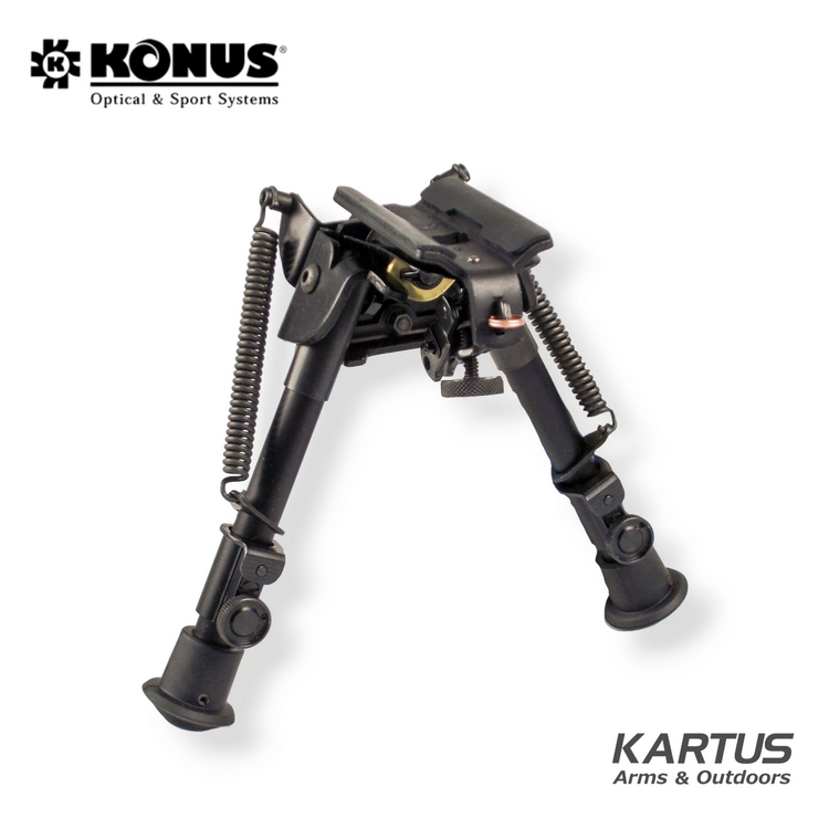KONUS Bipod 6-9" 1948 Built with the toughest alloy steel and equipped with a mounting system that fits the Weaver-Picatinny rail, this bipod is an ideal accessory for most rifles and will give you a stable rest whilst hunting or shooting. Being foldable it is easily portable. It has a maximum height of 9″ (22cm).