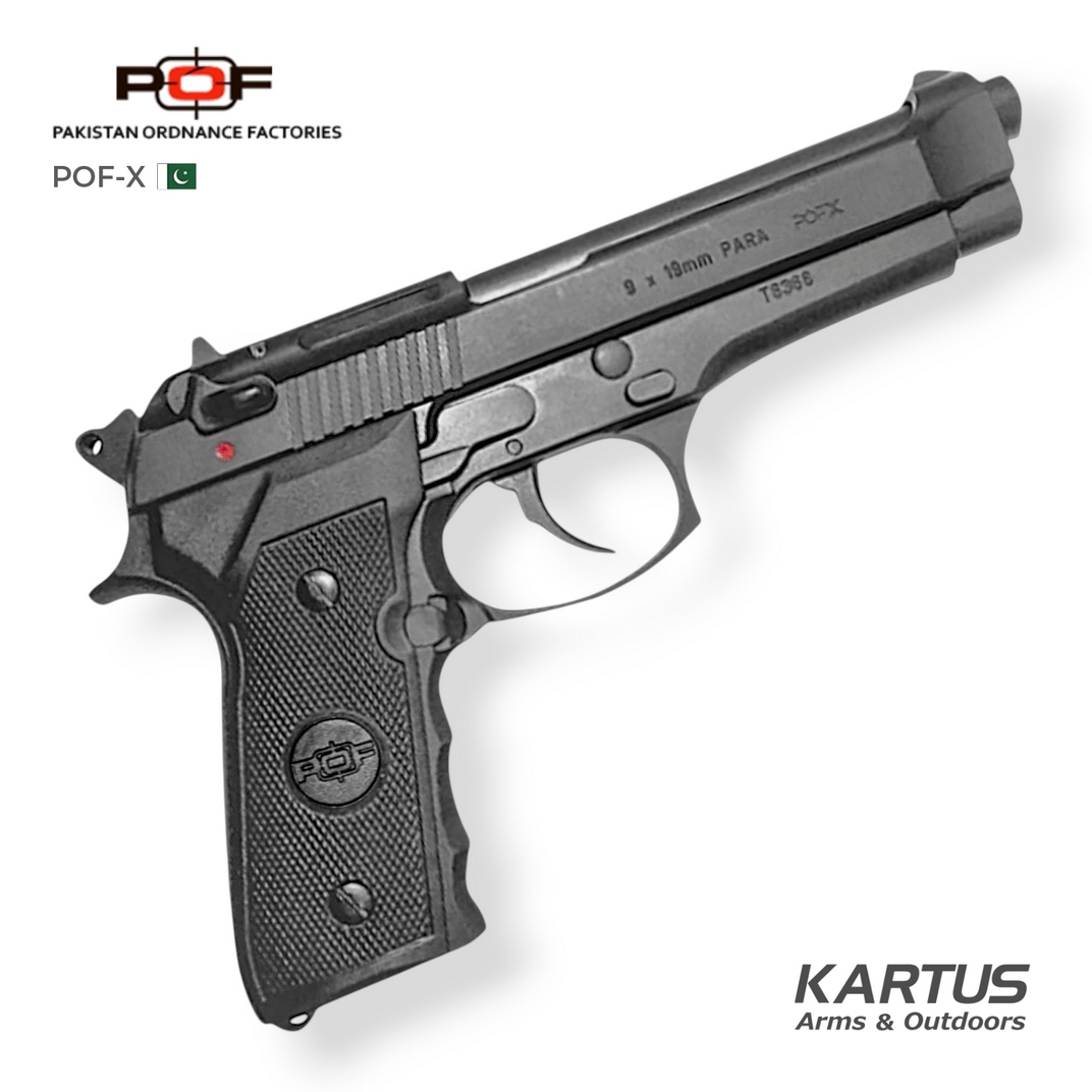 The POF-X is a modern 9mm semi-automatic pistol developed by Pakistan Ordnance Factories (POF) and sold by Wah Industries Limited (WIL). Designed for self-defense and law enforcement use, it offers a combination of reliability, accuracy, and ergonomic design. The pistol features a high-quality aluminum alloy frame and a stainless steel slide, ensuring durability and performance. With an 18-round magazine capacity and a 4.9-inch barrel, the POF-X delivers effective stopping power. Its fixed front and dovetailed notched rear sights provide quick target acquisition, while the ergonomic grip ensures comfortable handling. The POF-X offers an affordable option for those seeking a reliable self-defense weapon.