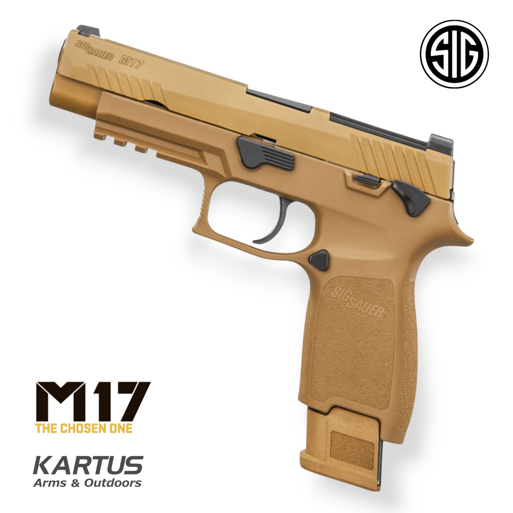 The SIG Sauer M17 is the compact version of the U.S. military’s official sidearm, featuring the same modular platform as the P320. It boasts a carry-length grip with a compact slide, a manual safety, and comes optics-ready with a removable rear sight plate for red dot mounting.