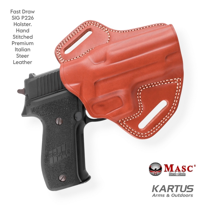 Fast draw holster for Sig Sauer P226. Made from Italian leather and hand-stitched.