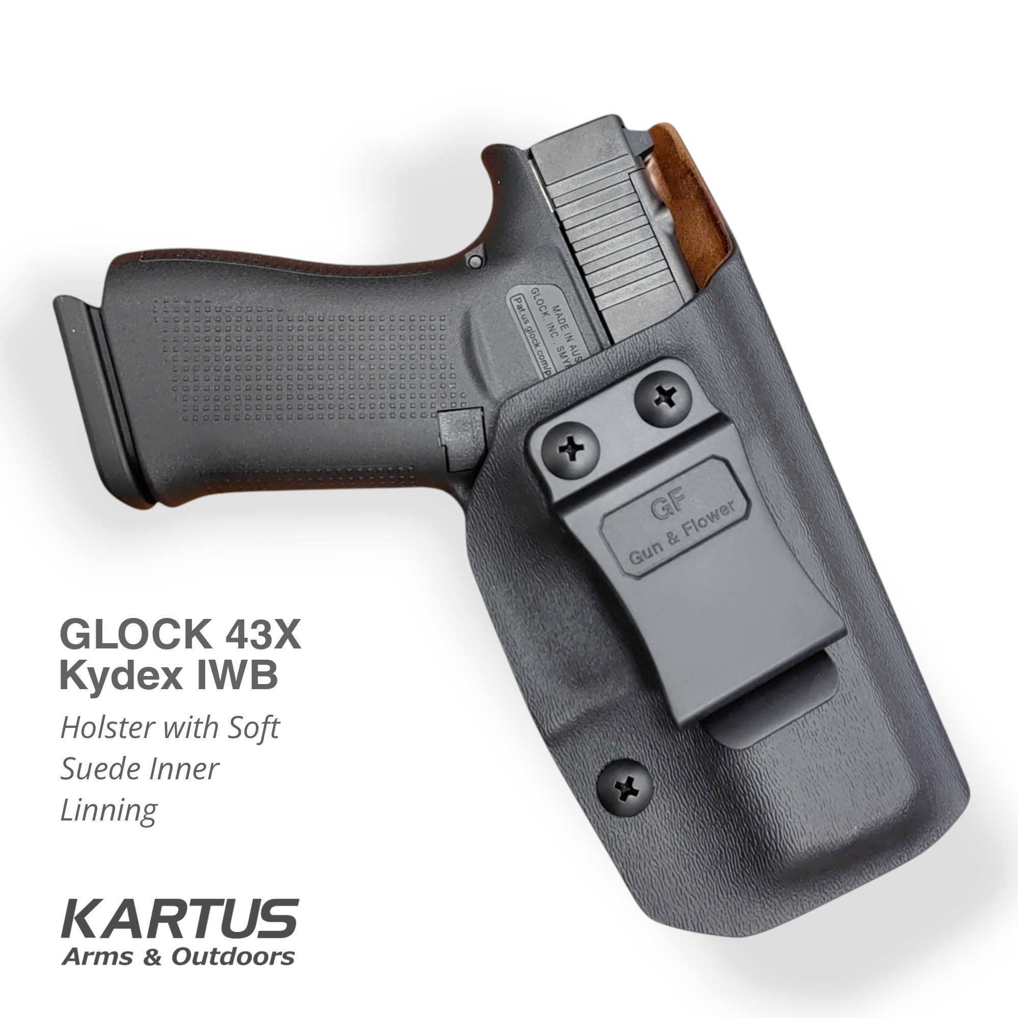 GLOCK HOLSTER 43X Kydex IWB, with Soft Suede Inner Lining.